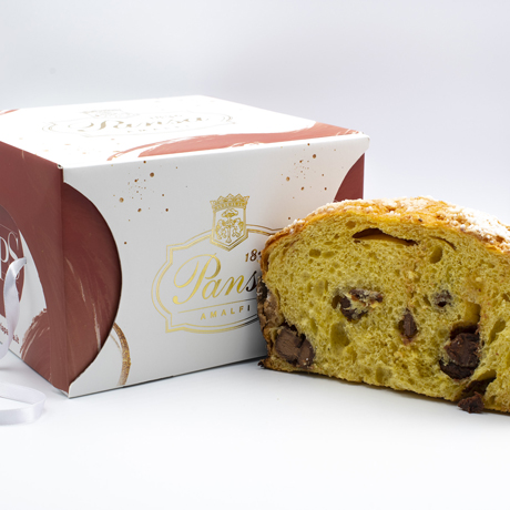 A true revelation... The combination of orange zest and 61% chocolate creates a balance of scents, flavors and pleasures that in a few years has brought this panettone to the top of the index of appreciation of gourmand Pansa fans. Our handcrafted panettone cakes are all made using a natural leavening process. (Sourdough).